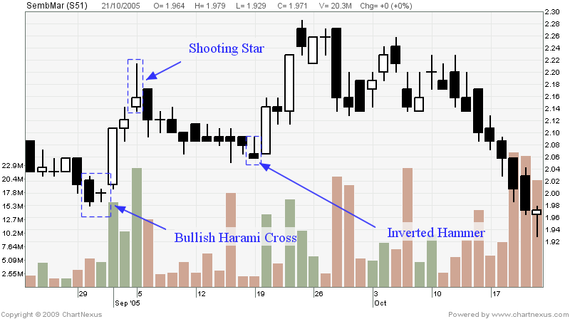 After a retracement, SembMar exhibited a Bullish Harami Cross pattern. This signaled a possible short-term reversal. However, on the third day after the shooting star was formed, the prices then started to decline. During the downward price movement, an inverted hammer was observed which signaled a possible trend reversal.